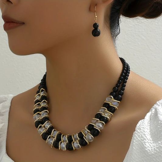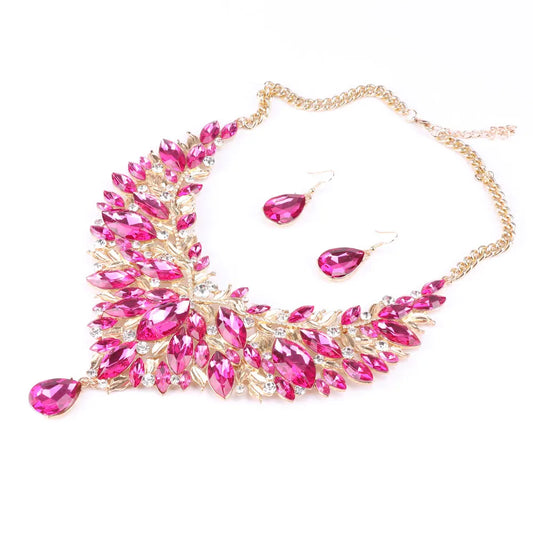 Rhinestone Necklace & Short Glass Earrings Chain Dress Jewelry Set