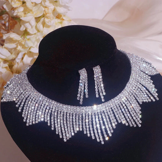 New Crystal Rhinestones Large Choker Necklace Earrings Sets