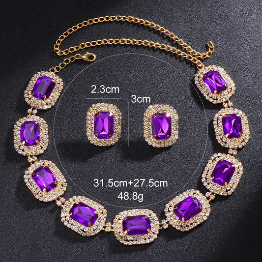 Stonefans Rhinestone Purple Necklace Earrings Set