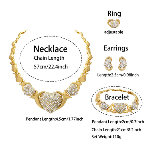 Bridal Jewelry Sets Dubai Silver Plated Crystal Necklace Bracelet Earrings Ring Set