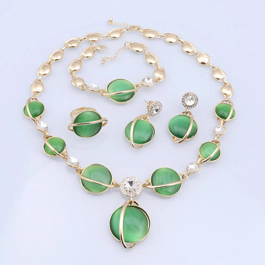 Italian Gold Plated Opal Jewelry Set Necklace Ring Earrings Bracelet For Women Wedding Party Accessories