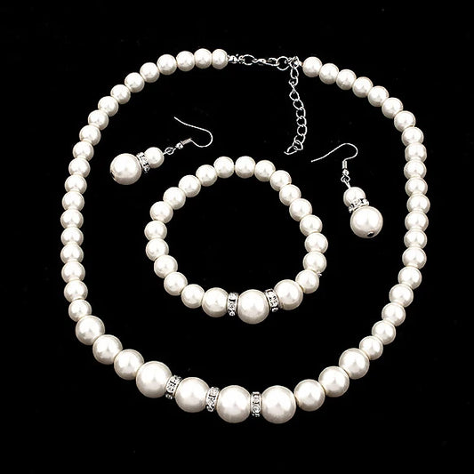 Luxury Crystal Simulated Pearl Necklace Earrings Jewellery Sets