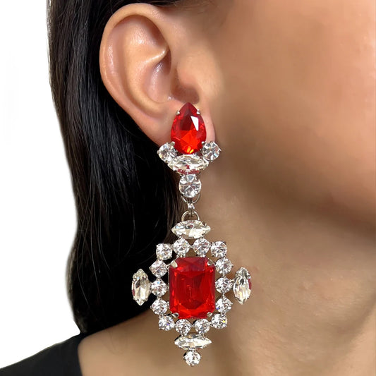 Red Square Earrings Necklace Sets Crystal Hanging Girls Jewellery