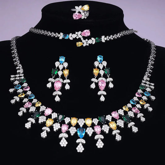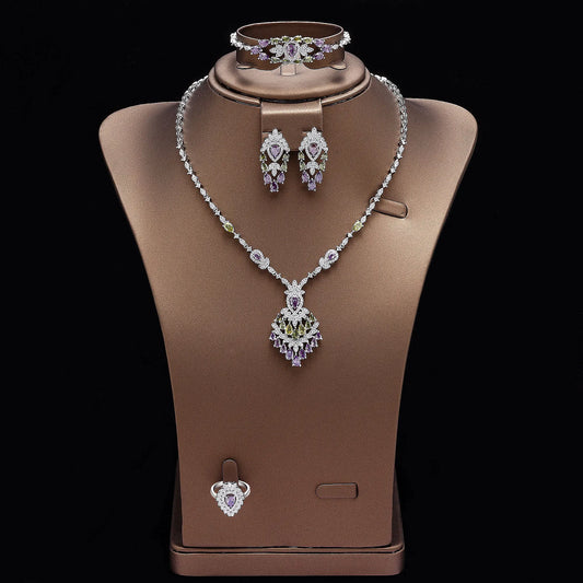 New Exquisite Pendant Dubai Wedding Jewellery Set Bridal Wedding Party 4 Piece Accessories Set
