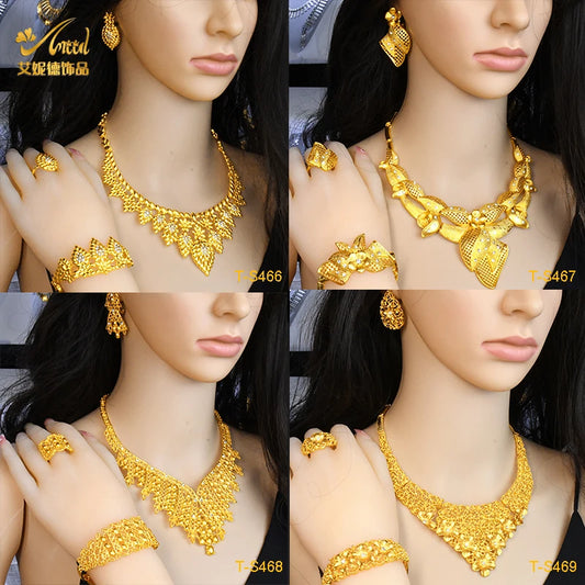 ANIID African Jewelry Set Dubai Gold Color 24K Luxury Bridal Earrings And Choker Set Wedding Ethiopian Jewelry Party Gifts