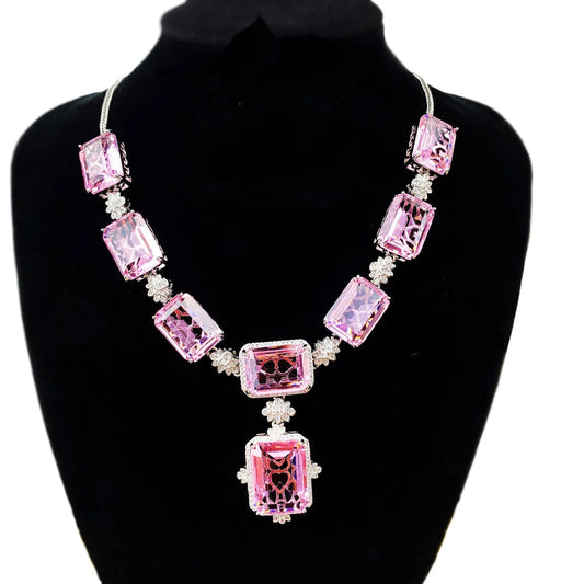 Silver Jewellery Sets Pink Cubic Zircon Ring Earrings Pendant Necklace Set