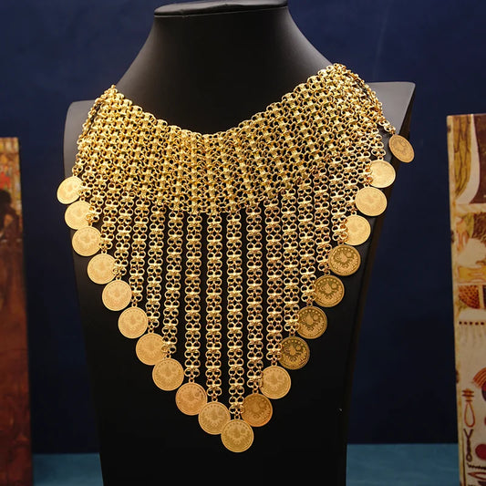 Luxury Jewellery Set High Quality Kurdish Coin Gold Plated Pendant Wide Necklace Long Shoulder Chain