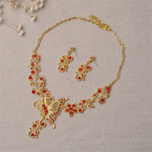 Water drop Butterfly Bridal Jewellery Sets Earring Necklace Set Crystal Wedding Jewelry