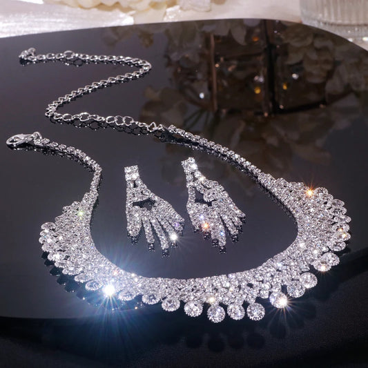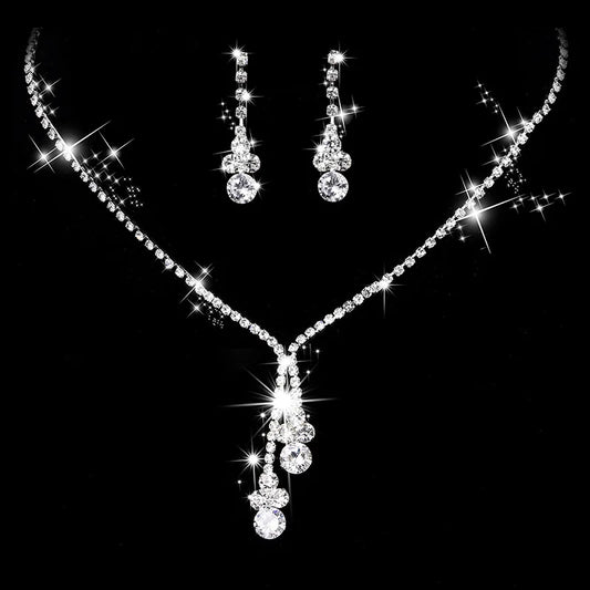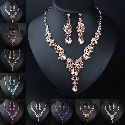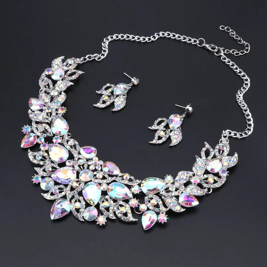 Crystal Necklace Earrings Elegant Romantic Wedding Jewellery Sets