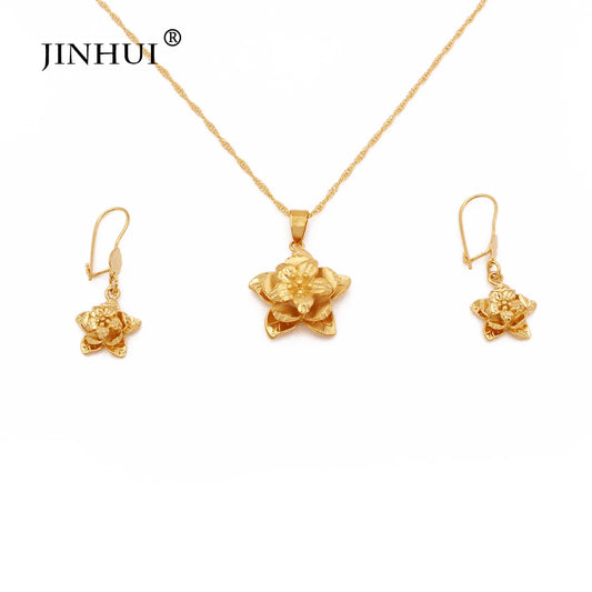 gold colour jewellery African flower pendant Ethiopia bridal necklace and Earrings set