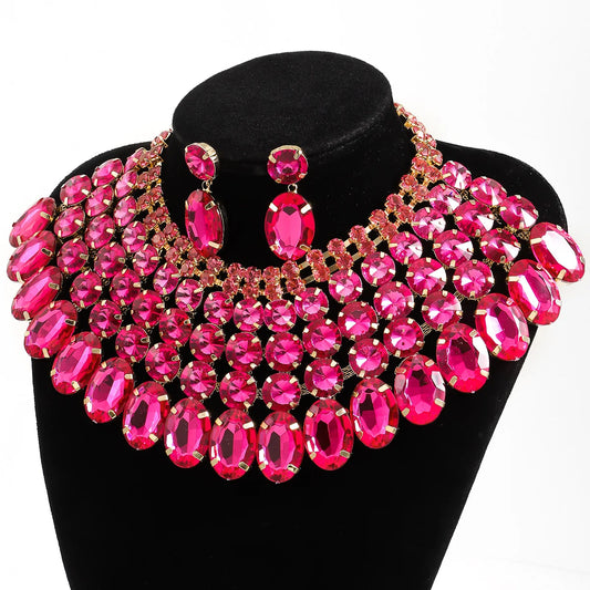 Crystal Necklace Earrings Jewellery Set Choker African Nigerian Bridal Wedding Party Necklace