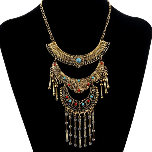 Ethnic Necklace Choker Crystal Rhinestone Beads Coin Tassel Jewellery
