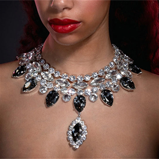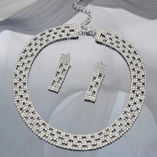 Statement Jewellery Ladies Crystal Rhinestone Earrings and Choker Necklace Set