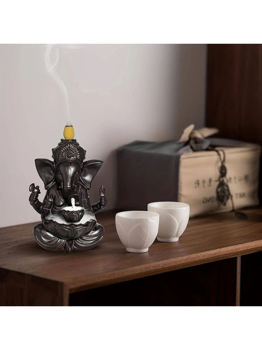 1pc Ganesha Waterfall Incense Burner, Ceramic Backflow Censer Incense Holder, Ornament Home Decor