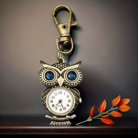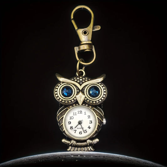 Vintage Noble Owl with Diamond Keychain Watch Hanging Watch Quartz Watch Men's and Women's Keychains
