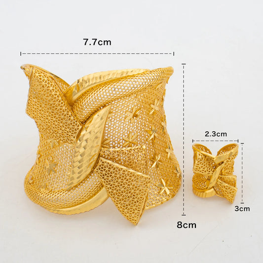 2PCS Dubai Bangle Jewelry Ring Set