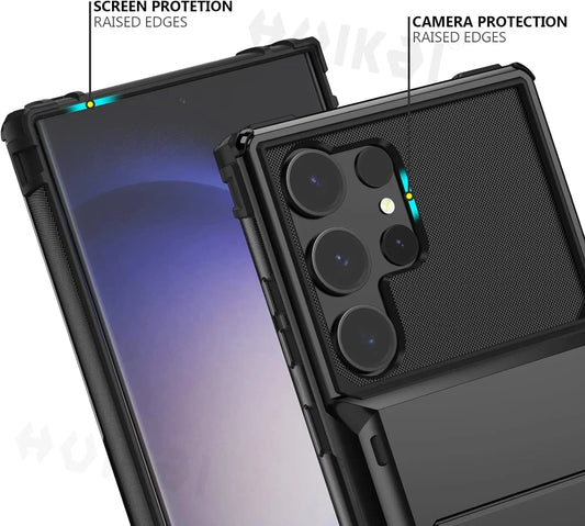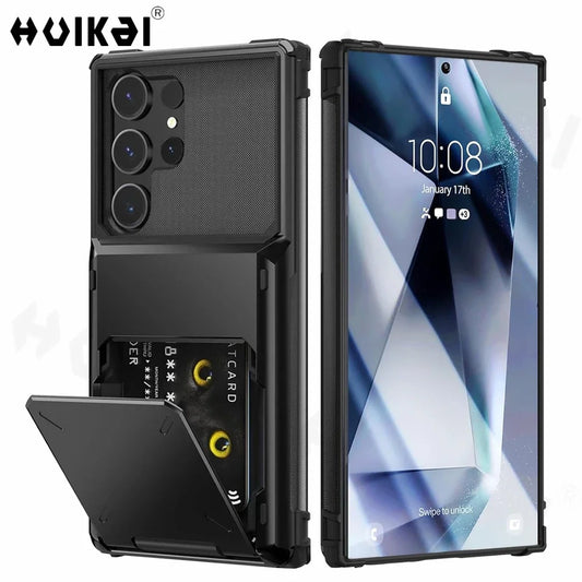 Card Holder Case For Samsung Galaxy S25 Ultra S24 S23 S22 Note 20 10 S10 Plus Heavy Duty Wallet Hidden Flip Slot