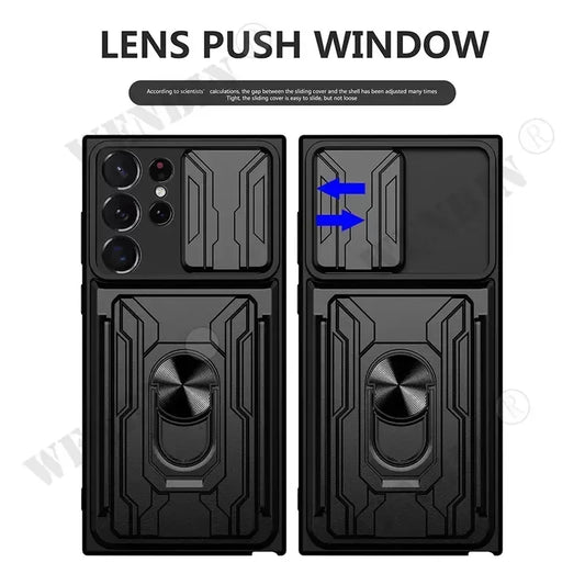 Case For Samsung S25 Ultra Slide Stand Ring Camera Military Grade Card Slot Cover