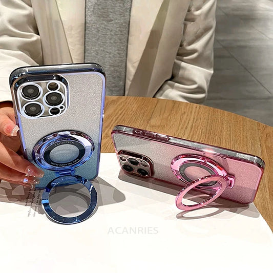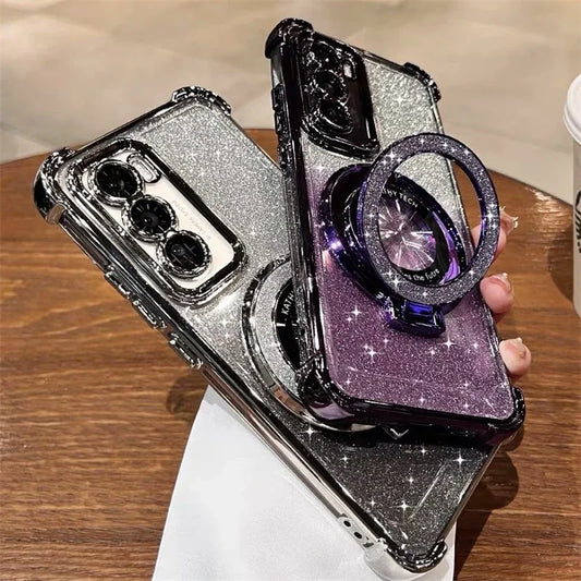 Luxury Glitter Magsafe Magnetic Ring Stand Case for Samsung Galaxy S24 S23 S25 Ultra A55 A35 A25 A15 A05S A71 A54 A53 A52 Cover