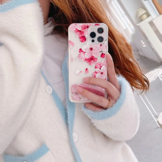 Pink Liquid Quicksand Case For Samsung Galaxy S24 S23 S22 S21 Plus S20 FE S25 Ultra A54 A55 Glitter Flower Bling Clear TPU Cover
