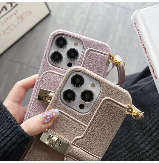 Ladies Card Slots Wallet Crossbody Phone Case for iPhone 15 14 13 12 11 Pro Max Cover with strap