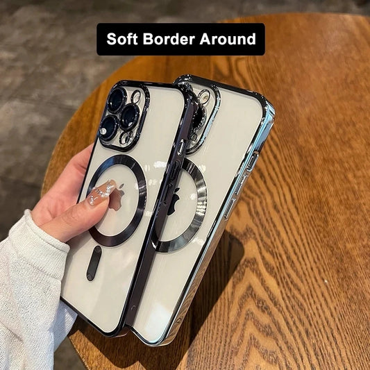 Man Luxury Plating Magnetic For Magsafe Case For iPhone 15 14 13 12 11 Pro Max Plus Magnetic Wireless Charge Shockproof Cover