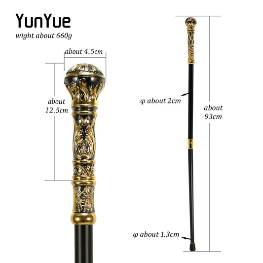 Golden Black Luxury Round Handle Fashion Walking Stick for Party Suits Decorative Walking Gentlemen Elegant Vintage