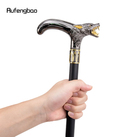 Golden Black Wolf Head Biting Walking Cane Fashion Walking Stick Gentleman Elegant Cosplay Cane 93cm