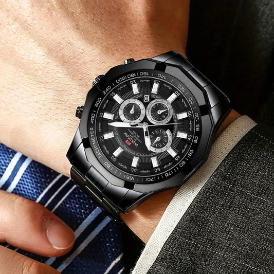 Watches Men Luxury Chronograph Male Waterproof Stainless Steel Quartz Watch