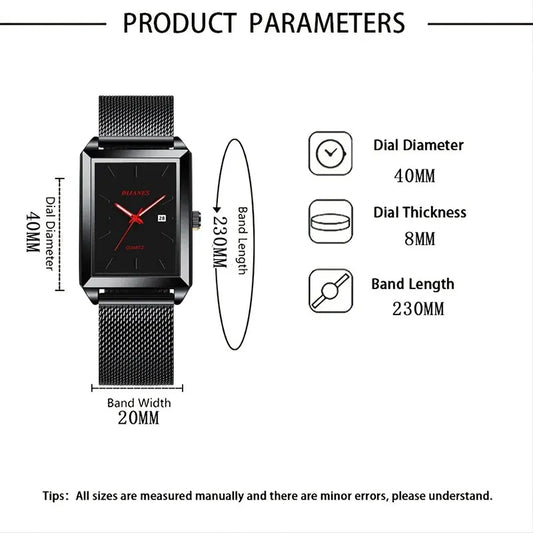 Watches Luxury Black Square Stainless Steel Mesh Belt Watch