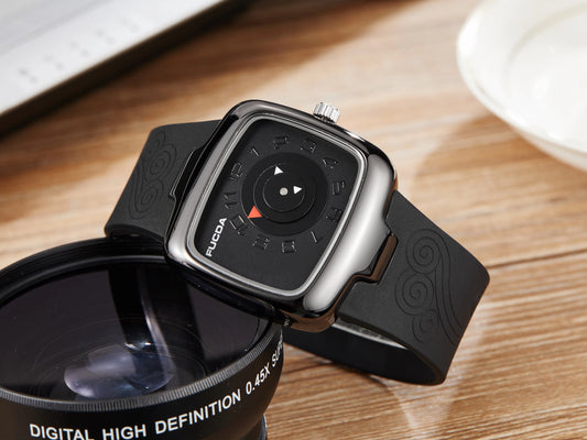 Square Men Watch Quartz Wristwatch Creative MAN Watches Black White