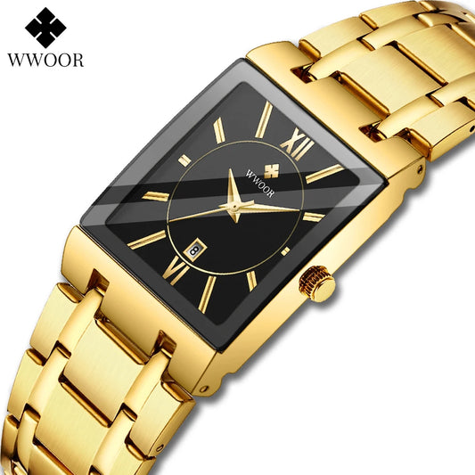 Square Watch Automatic Luxury Stainless Steel Gold Men's Quartz Wrist Watches