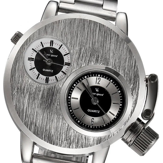 Quartz Watch Male Wristwatches Two Time Zone Men's Designer Watches