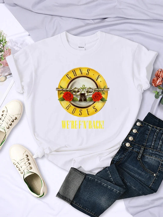 Summer Women's Cotton T-Shirt Plus Size Women's Tops Guns N' Roses We're Back Retro Street Style Printed T-Shirt Loose/Breathabl