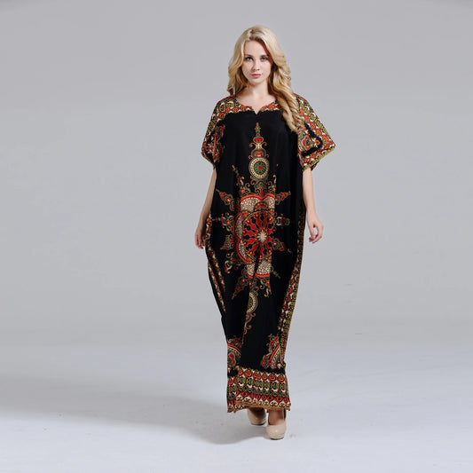 Dashikiage 100% Cotton Dashiki Nigerian Applique Fashion Crew Neck Short Sleeve Boubou Muslim Abaya Loose Maxi Dress New