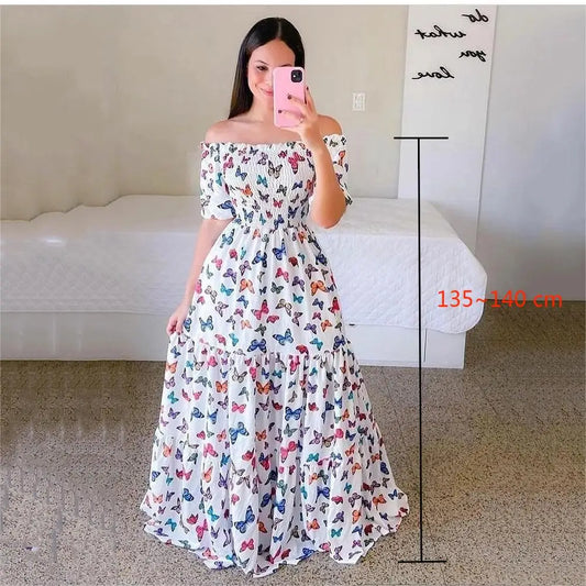 Woman Long Dresses for Flower Suspender Female Summer Party short Elegant Casual Boho Holiday Dress Girl Off Shoulder Lady Print