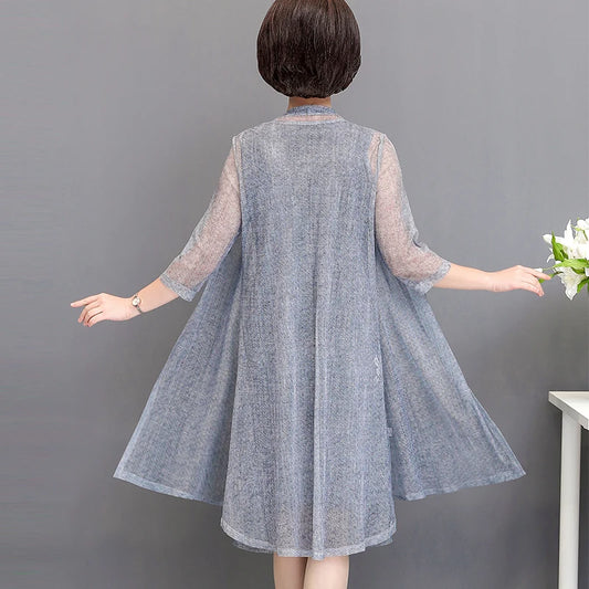 summer cotton linen 2 piece set dress cardigan women 3xl 4xl 5xl party midi dresses elegant vintage robe femme