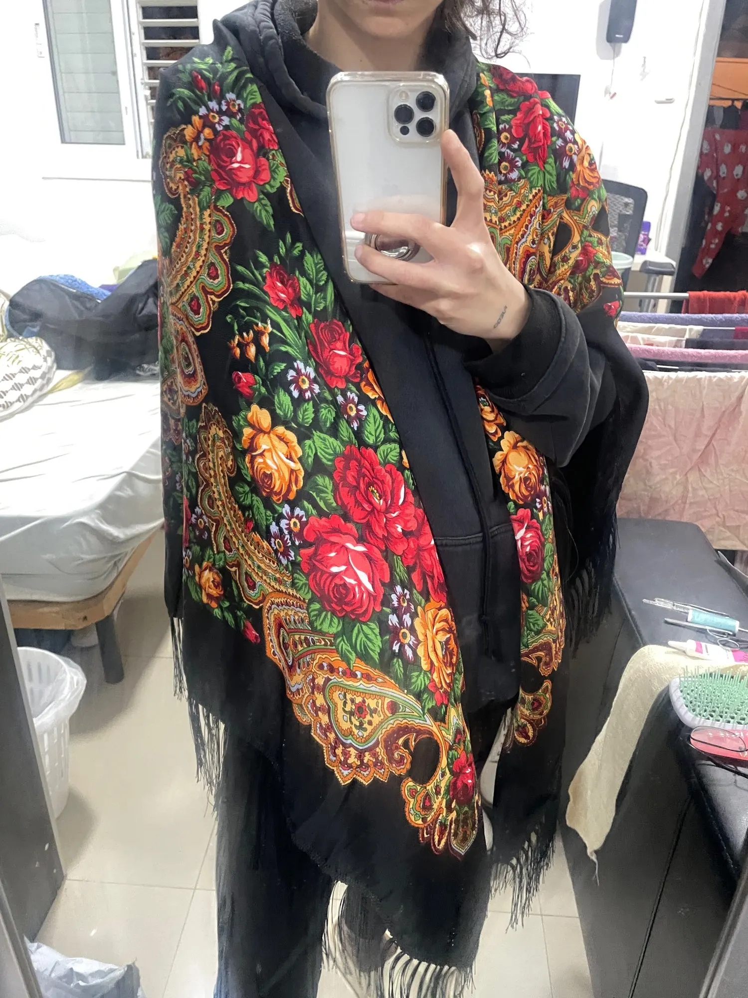 160*160cm Women Russian National Scarf Lady Tassel Floral Print Headscarf Wraps Babushka Bandana Beach Travel Shade Shawls