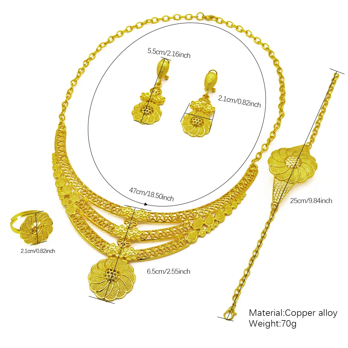 24K Gold Colour Jewellery Sets For Women Necklace Earrings Nigerian Indian Bridal Set