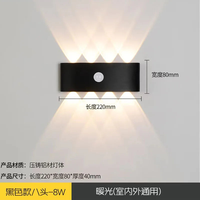 6/8/12W PIR Motion Sensor LED Indoor Outdoor Waterproof Aluminum Garden Porch Light Corridor Entrance Living Room Sconce Light