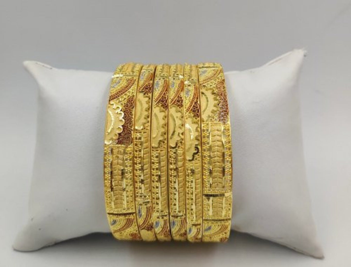 6 Pc Gold Plated Bangles, High quality Handmade Bridal Jewellry, 22ct Heavy Gold forming Jewellery "3 Day UK delivery"