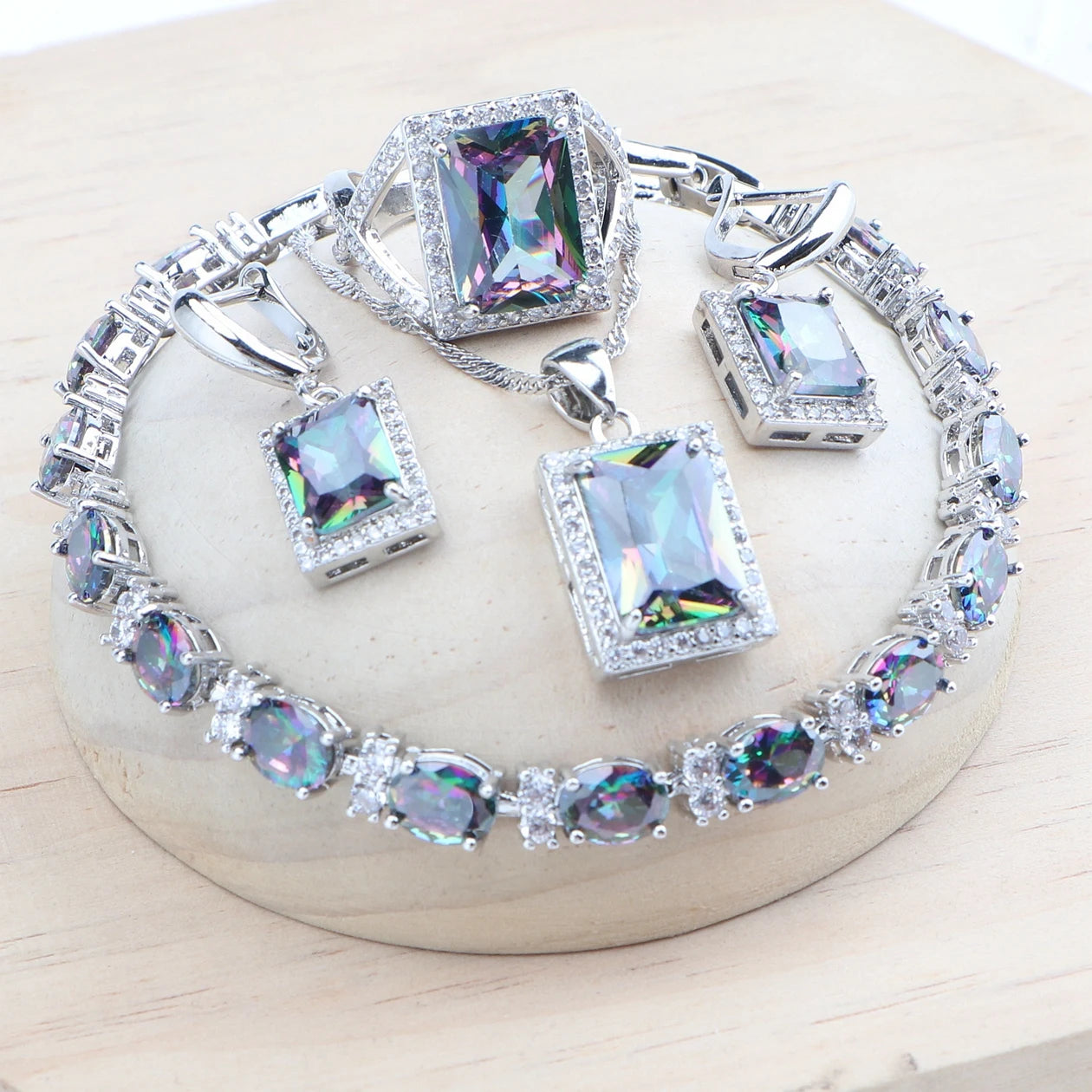 Make a statement on your special day with our stunning 925 Silver Bridal Jewelry Set. This set includes a bracelet, earrings, rings, and a pendant necklace, all made with high-quality silver and adorned with beautiful black zircon stones. Each piece is stamped with 925 sterling silver and comes with a certificate of authenticity.