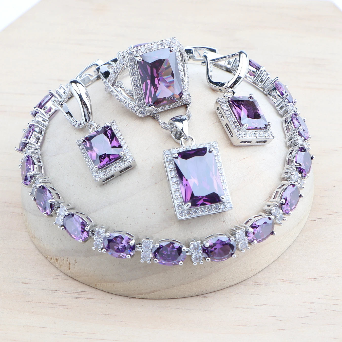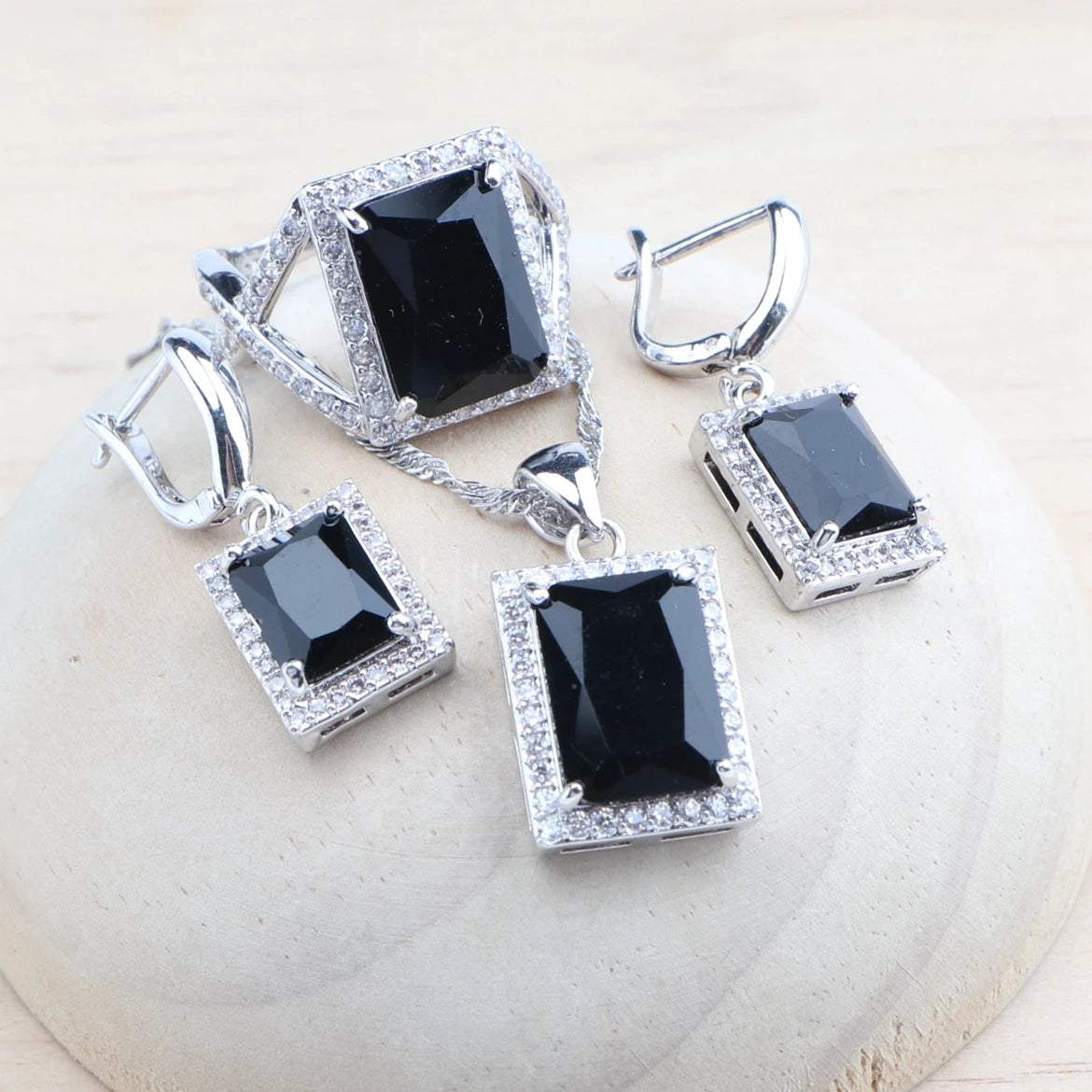 925 Silver Bridal Jewelry Sets Wedding Black Zircon Bracelets Earrings Rings Pendant Necklace Set For Women
