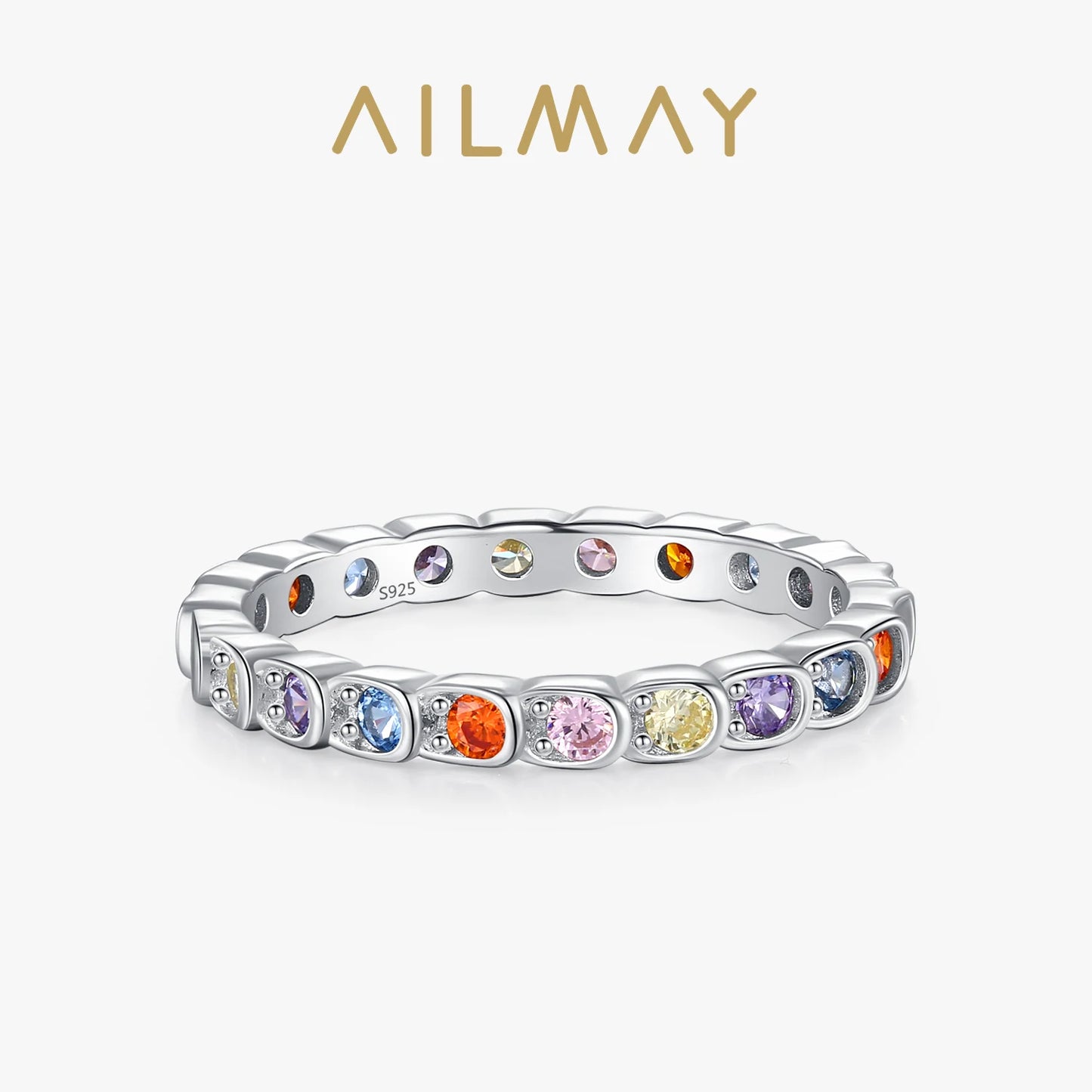 Ailmay 925 Sterling Silver Colourful Cute Round Bubble Ring For Women Rainbow Colour Zircon Fashion Fine Jewellery Accessories