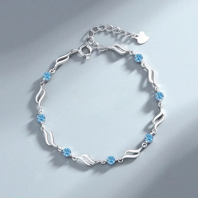 925 Sterling Silver Heart Shaped Necklace Bracelet Set for Women Vintage Korean Blue Crystal Bracelets Jewellery Set Party Jewelry
