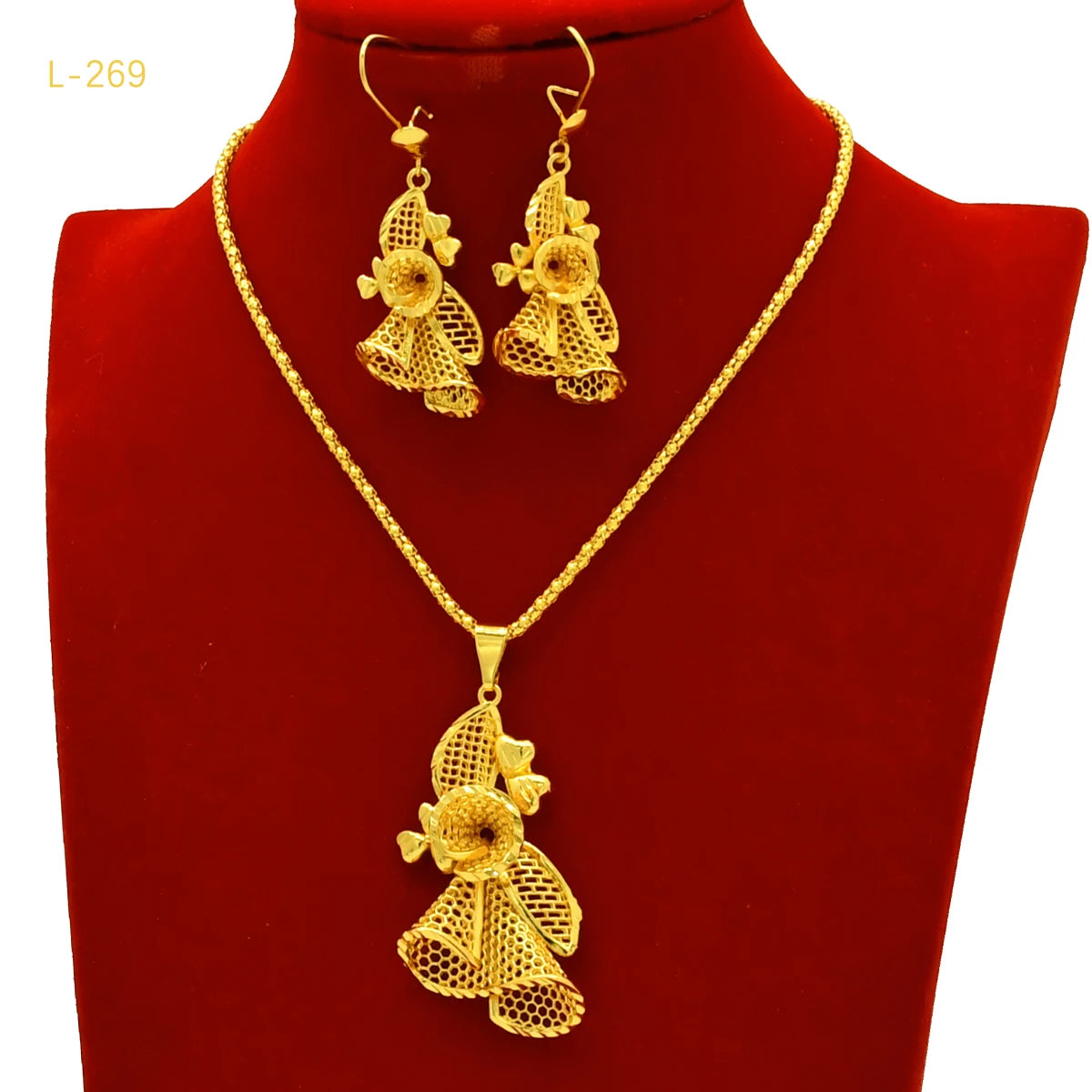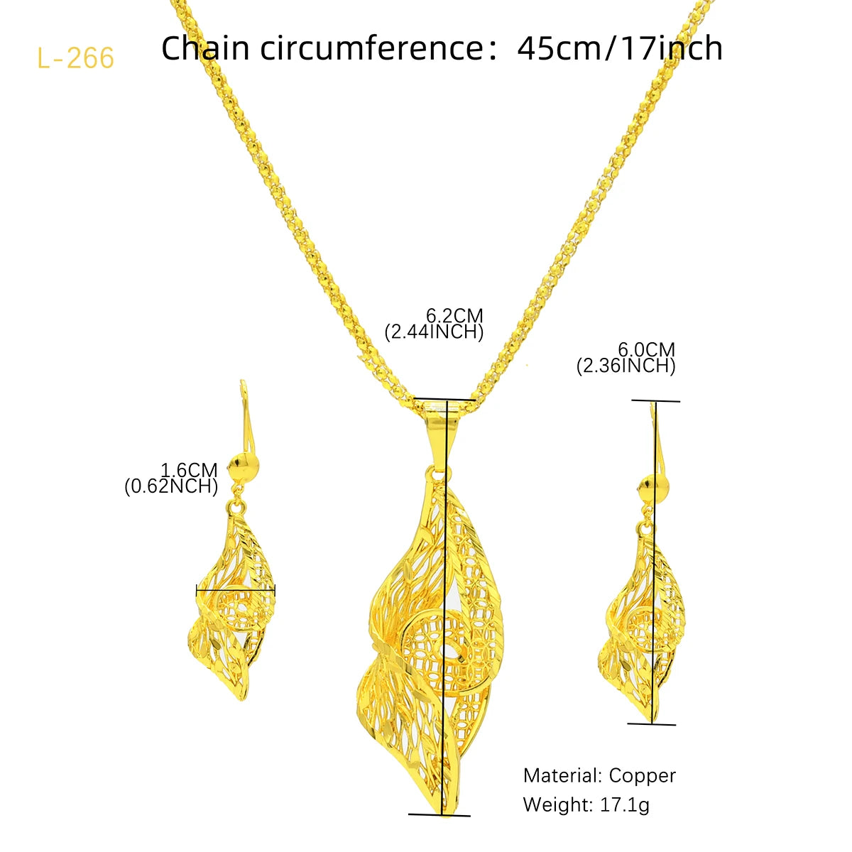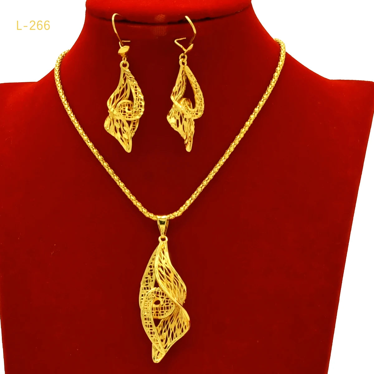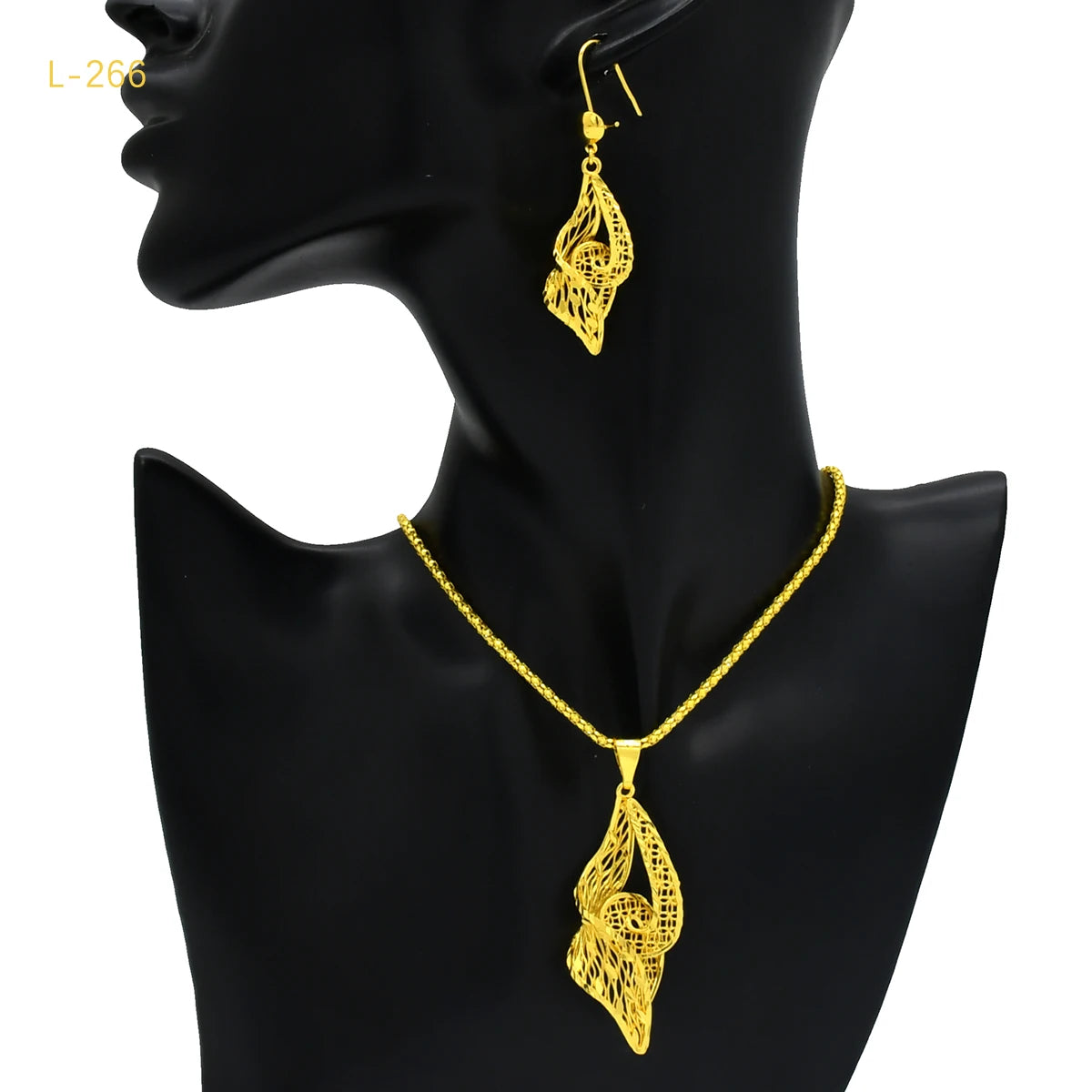 African Indian Bridal 2Pcs Pendant Jewelry Set Gold Plated Dubai Women Wedding Necklace&Earrings Jewellery Party Presents 24K