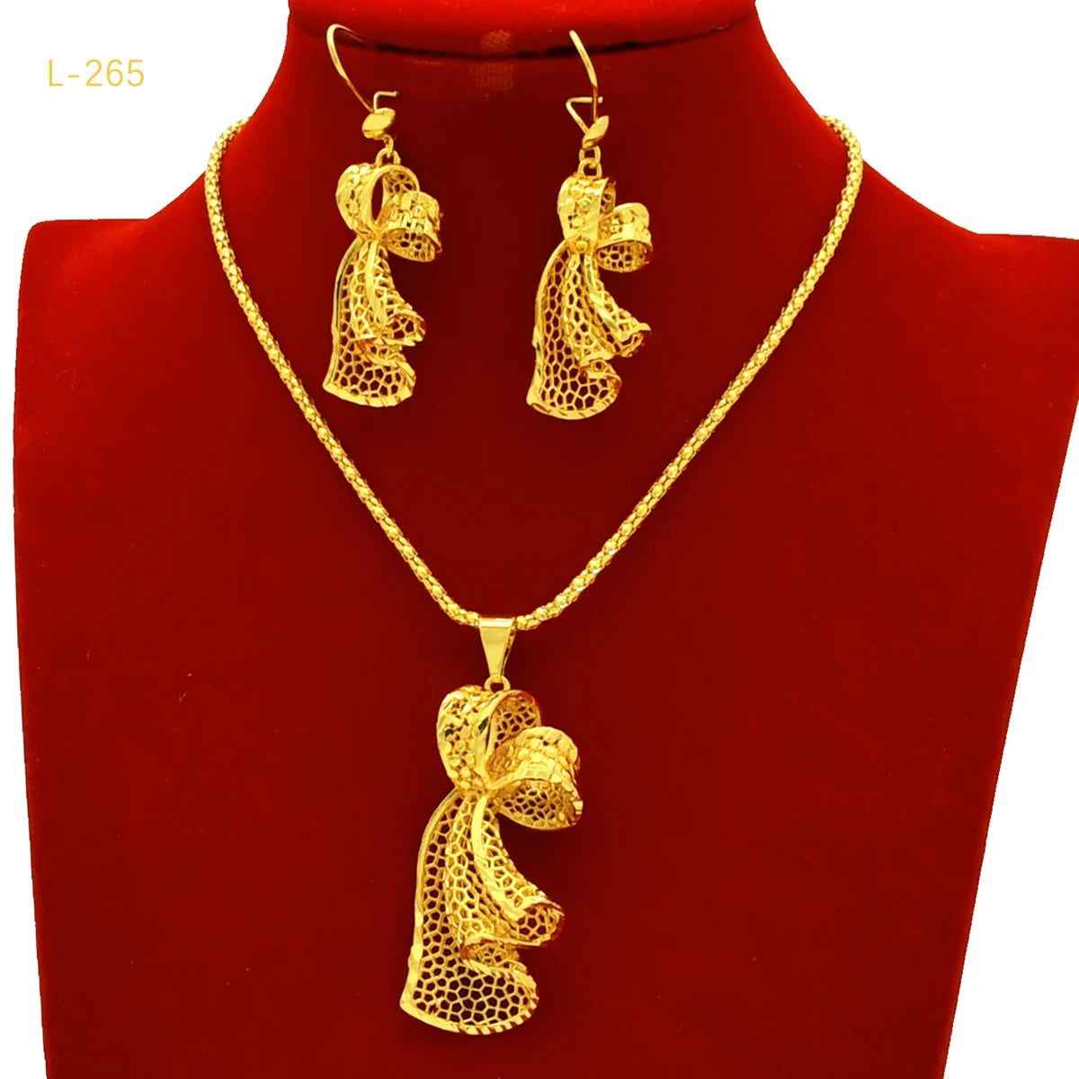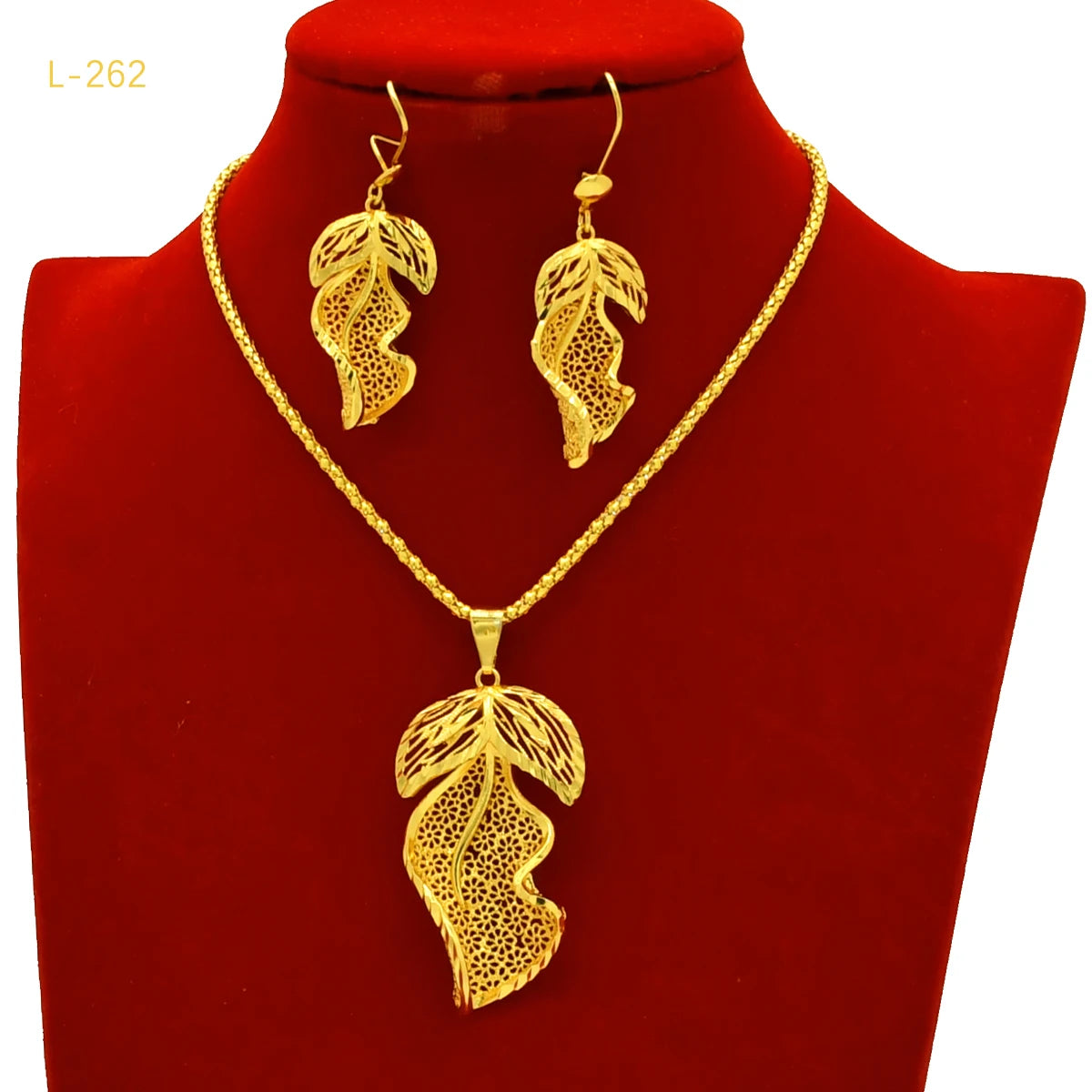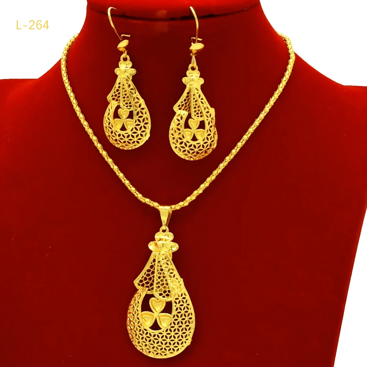 African Indian Bridal 2Pcs Pendant Jewelry Set Gold Plated Dubai Women Wedding Necklace&Earrings Jewellery Party Presents 24K