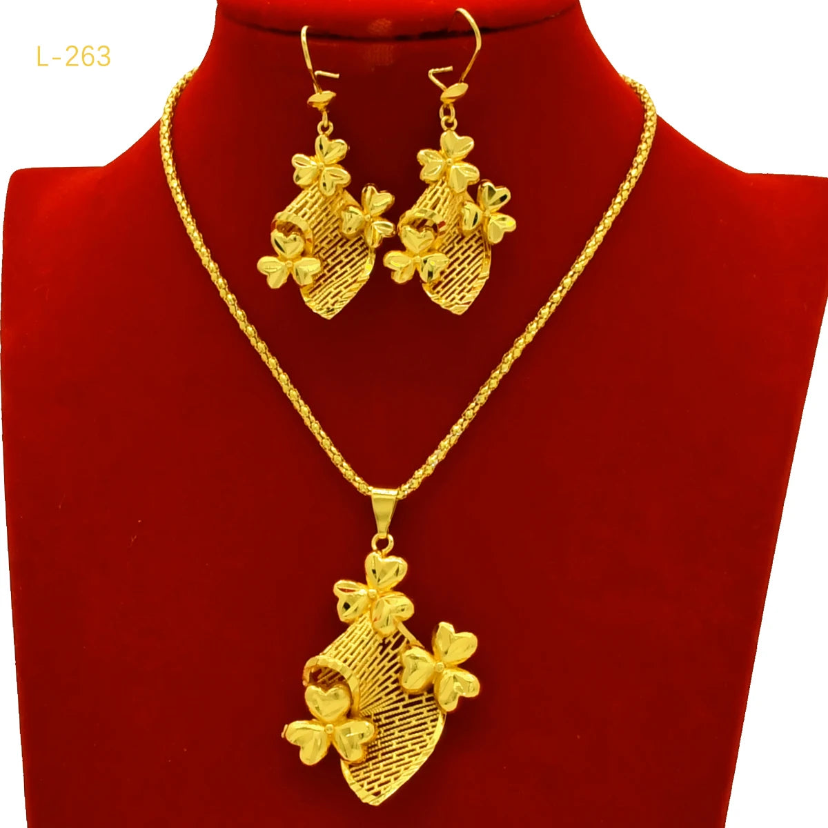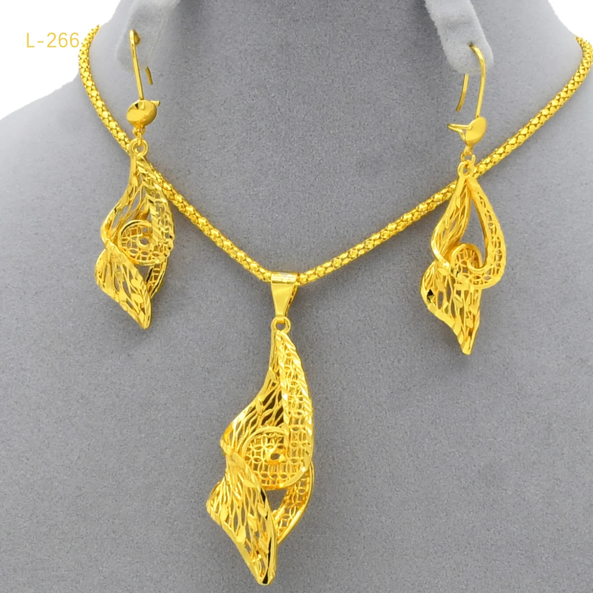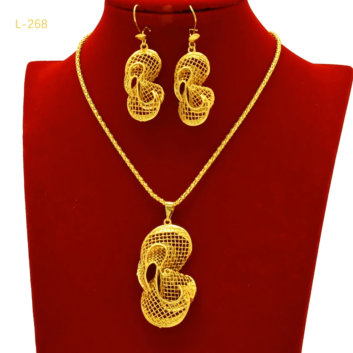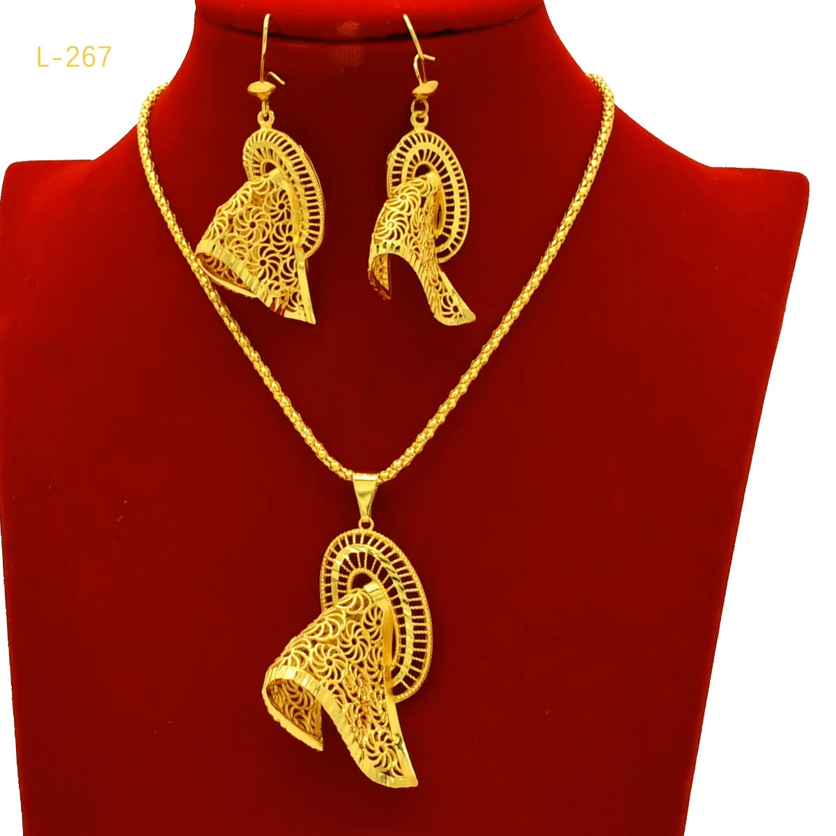 African Indian Bridal 2Pcs Pendant Jewelry Set Gold Plated Dubai Women Wedding Necklace&Earrings Jewellery Party Presents 24K