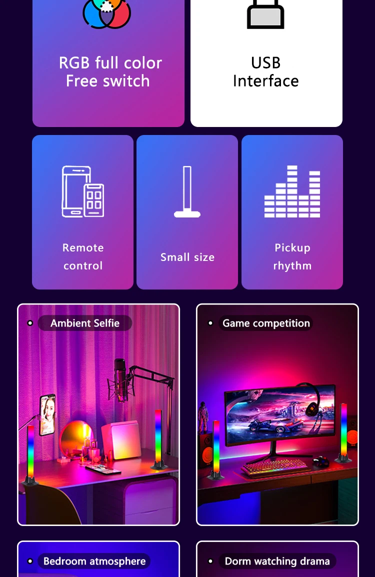 Ambience LED RGB light bar voice atmosphere light TV Wall Computer Game Pickup Lamp Gaming Game Smart light desktop decoration