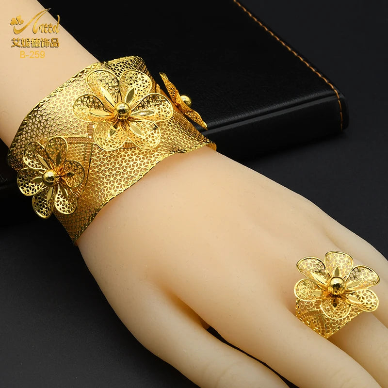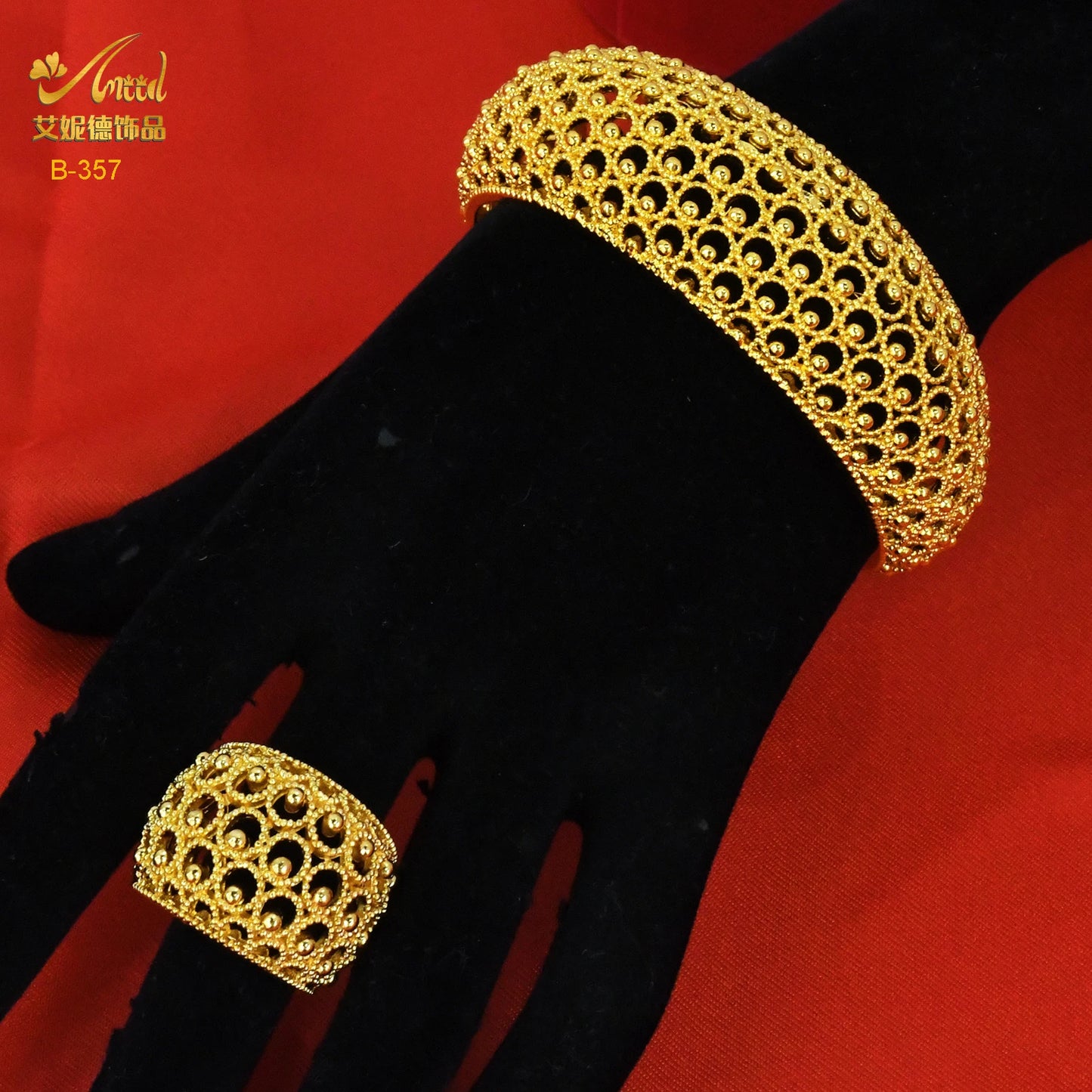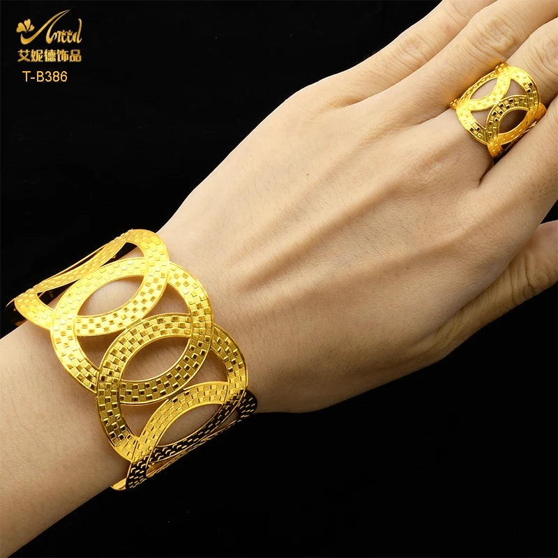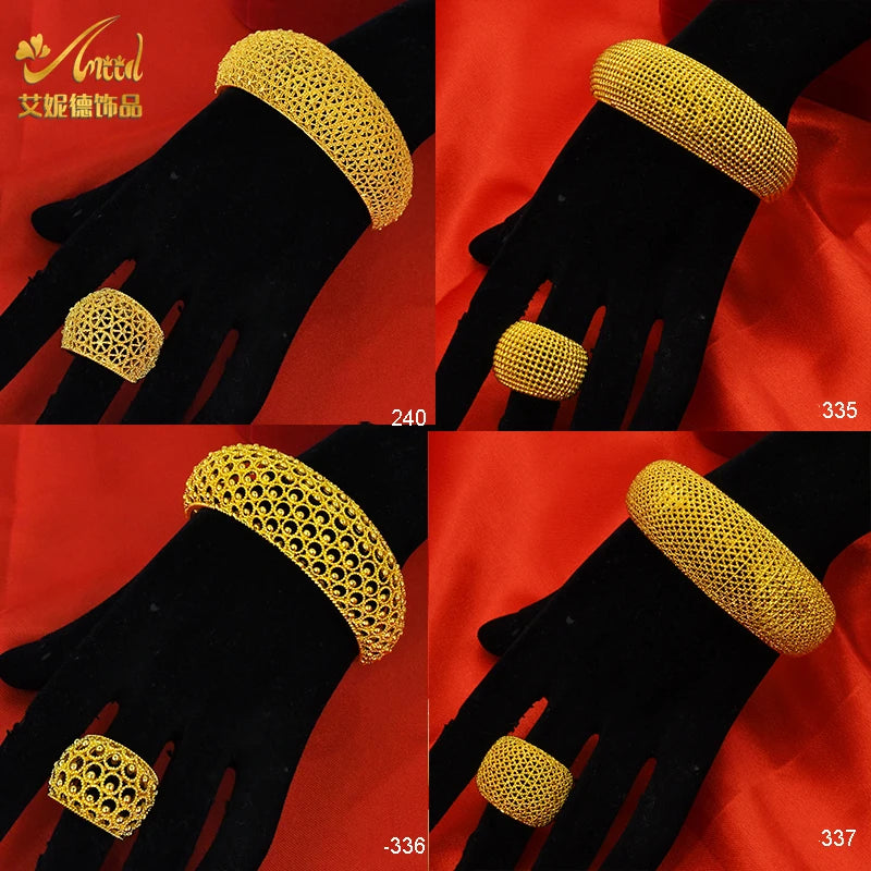 African Cuff Bangles With Rings Indian Women Charm Adjustable Gold Plated Bangle